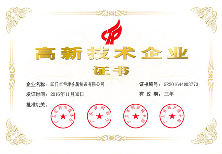 2016年11月30日,本公司之公司江門華津金屬制品有限公司(以下簡(jiǎn)稱“華津”)及江門市華睦五金有限公司(以下簡(jiǎn)稱“華睦”)分別收到由廣東省科學(xué)技術(shù)廳、廣東省財(cái)政廳、廣東省國(guó)家稅務(wù)局及廣東省地方稅務(wù)局共同批準(zhǔn)的《高新技術(shù)企業(yè)證書》(證書編號(hào)分別為:GR201644003773號(hào)及GR201644003774號(hào))。