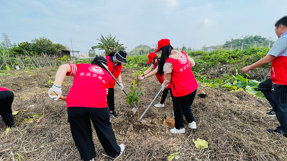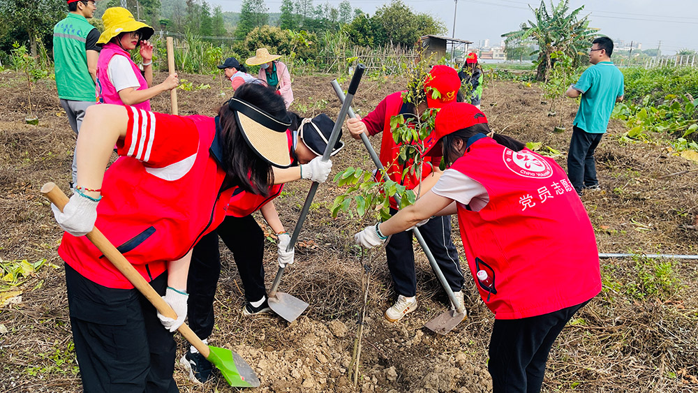活動(dòng)現(xiàn)場,職工們熱情高漲、配合默契,有序完成揮鋤挖坑、扶苗培土、踩實(shí)澆水等工序。經(jīng)過共同努力,120株龍眼樹苗扎根沃土,為大地增添盎然生機(jī)。
